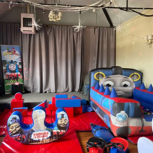 Bring magic to toddler parties with the Thomas the Tank Engine Themed Ball pool and Soft Play shapes in Newark, Nottinghamshire, Lincolnshire. This Thomas The Tank Engine Interactive Air Juggler Ball Pool and Soft Play Party Package is designed for children under 5. It features floating balls, bright lights, music, and safe soft-play shapes. Ideal for birthdays, nurseries, and family events.