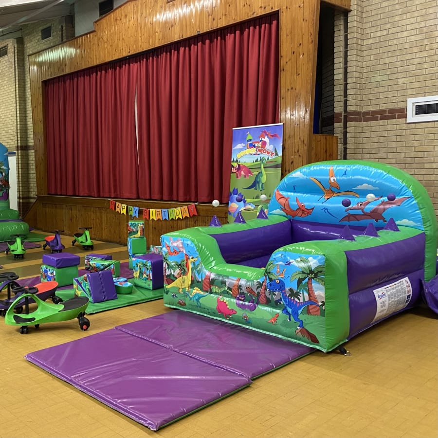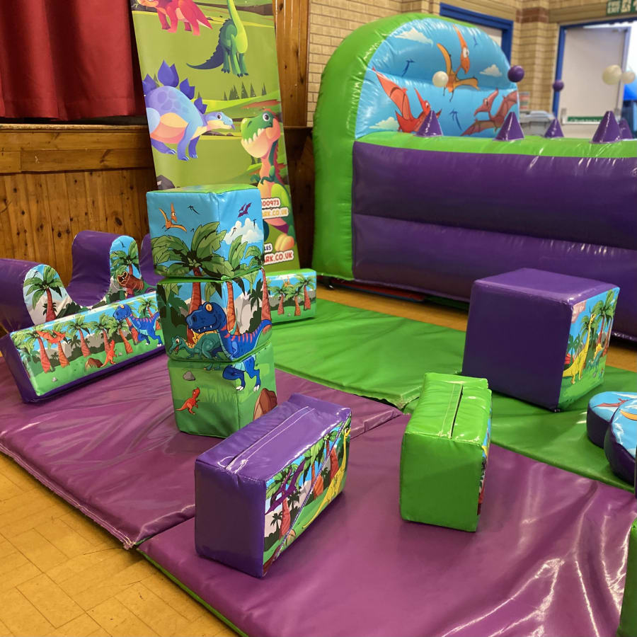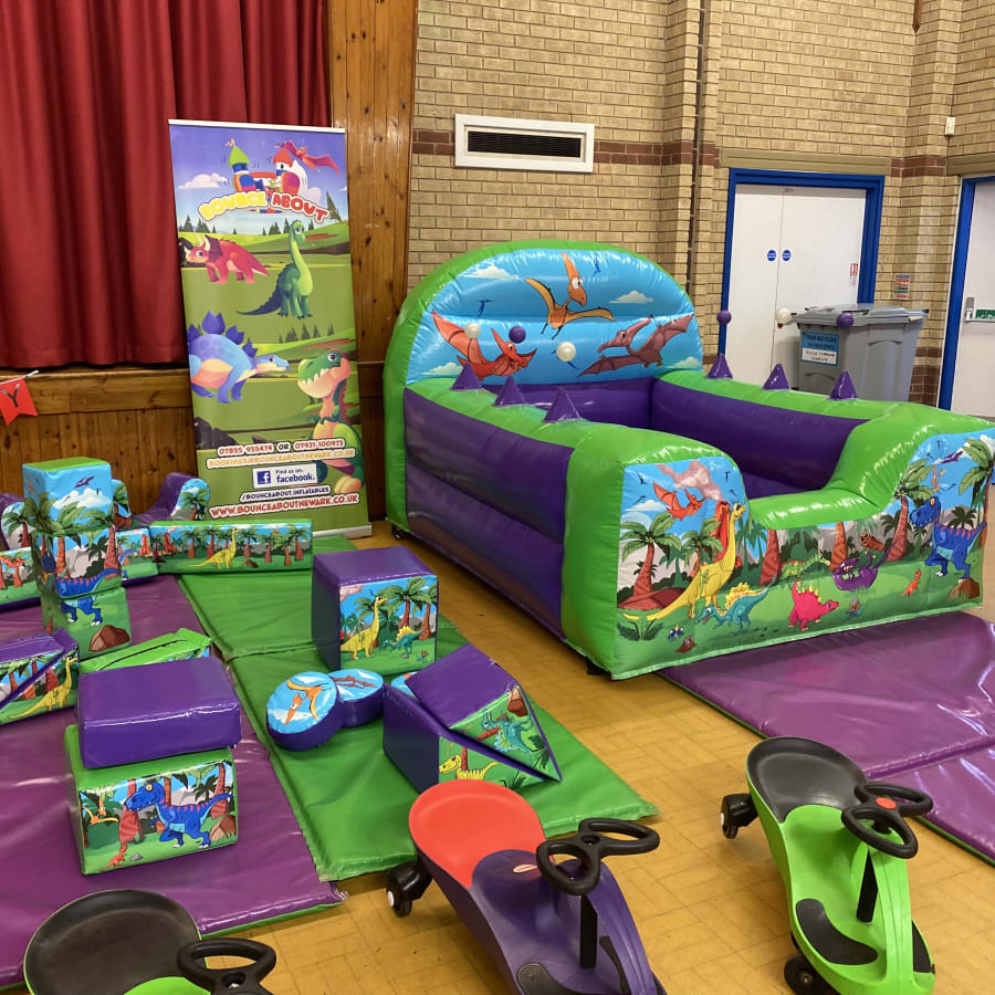 Bright. Safe. Interactive. The Dinosaur Interactive Air Juggler Ball Pool with 16 Piece soft Play Shapes delivers a bold dinosaur-themed soft play experience for parties, nurseries, and events. This set combines a large green soft play mat, Matching Dinosaur soft play shapes, Coloured matched Didi cars, rockers and a Bluetooth music system for non-stop fun. Perfect for families and event planners in Newark, Nottinghamshire, Lincolnshire. 🎶🟩