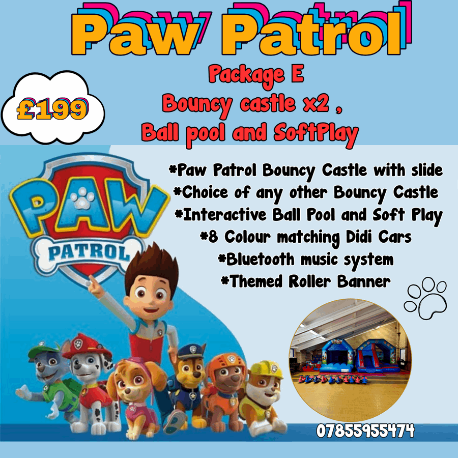 • Two bouncy castles – pick any two themes including Paw Patrol Theme 🐾