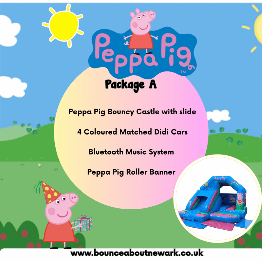 Throw a magical, stress-free party with our Peppa Pig bouncy castle with slide package. 🎉 Designed for small gatherings, this turnkey package blends soft-play excitement, racing fun and themed decor. Quick setup. Safe equipment. Instant smiles. 😊