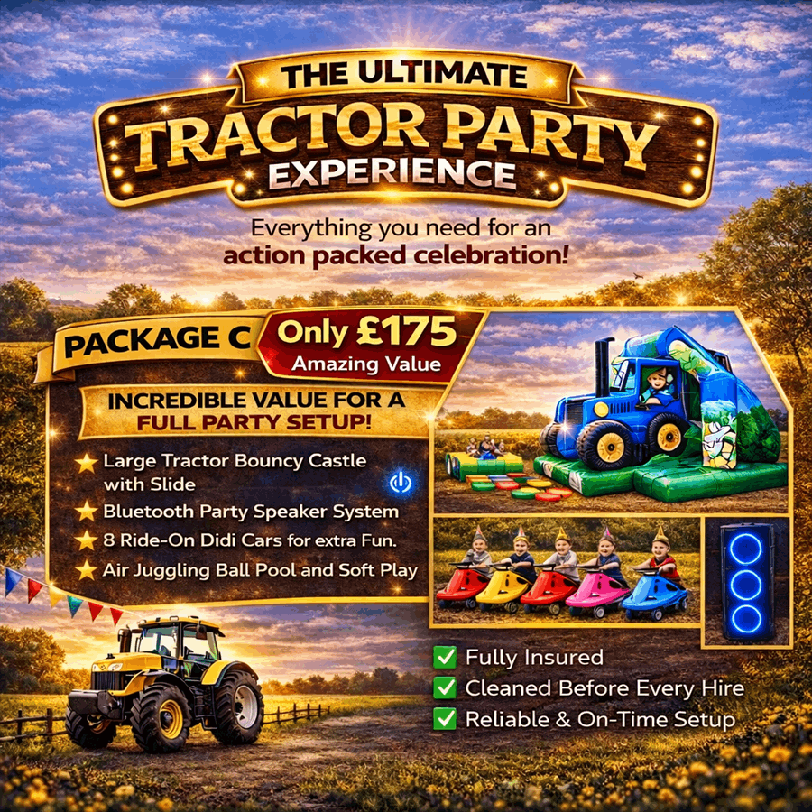 Secure this Tractor Themed Party Package for your next event in Newark, Nottinghamshire, Lincolnshire. Simple booking, reliable setup, and a party kids will love. Contact us now to check availability and pricing. 📞