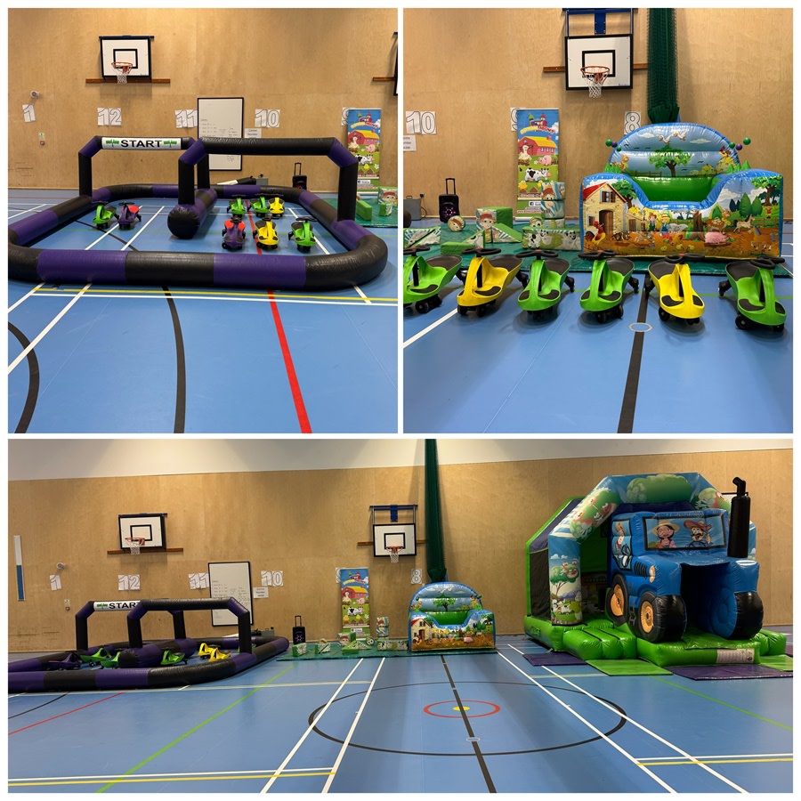 Looking for a Tractor themed event that entertains toddlers and older children? Tractor Bouncy castle and Soft ply Package F-(TRACTOR ) Bouncy Castle , Ball Pool with Soft Play, Bluetooth Music system, Inflatable Track and 8 Didi Cars in Newark, Nottinghamshire, Lincolnshire offers a complete, self-contained party solution. Bright theme. Safe soft play. An inflatable track for eight Didi cars. Perfect for birthdays, community fêtes, and family gatherings.